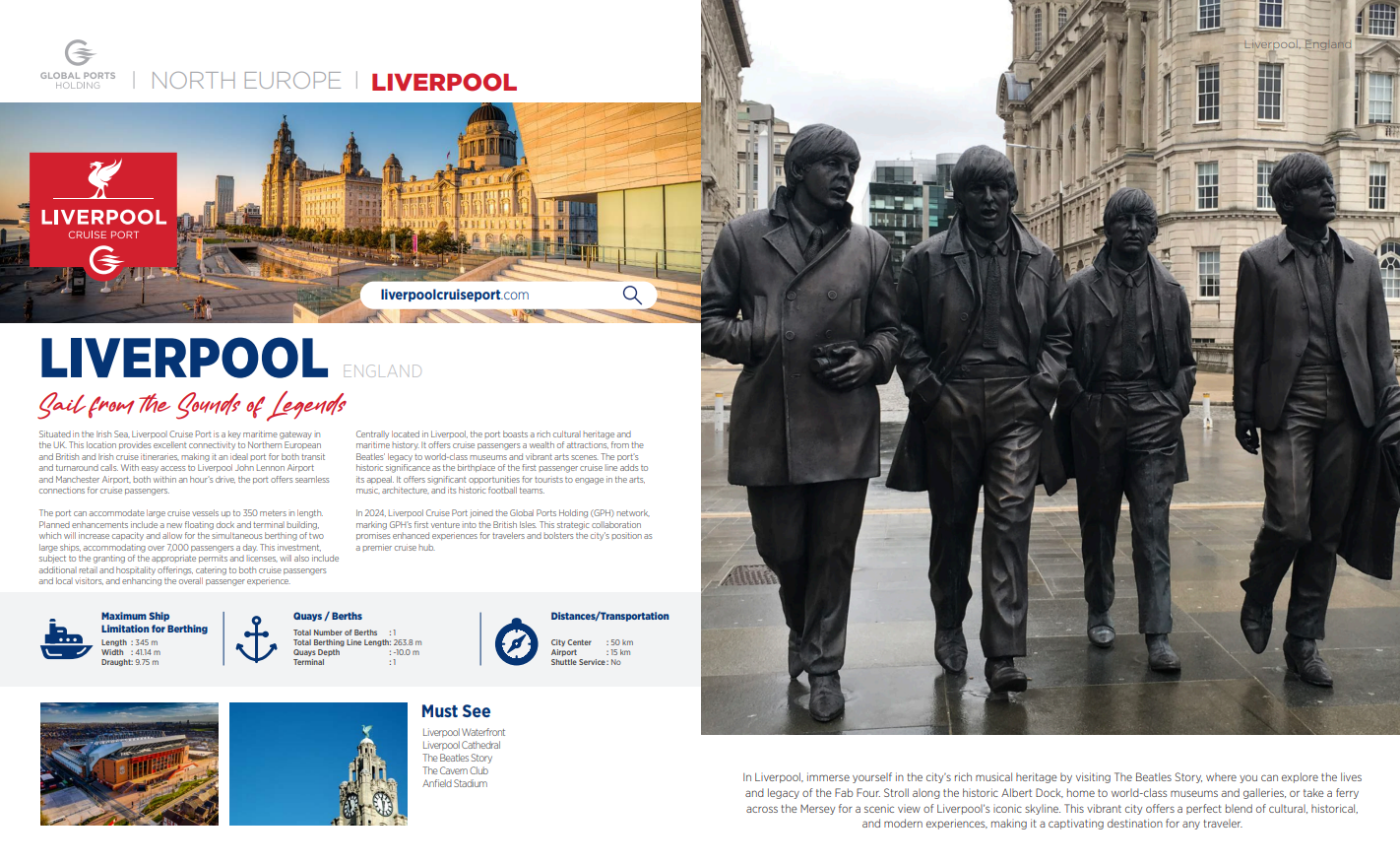 Liverpool Cruise Port operates 24 hours a day, 7 days a week, accommodating cruise ships year-round without any operational restrictions.